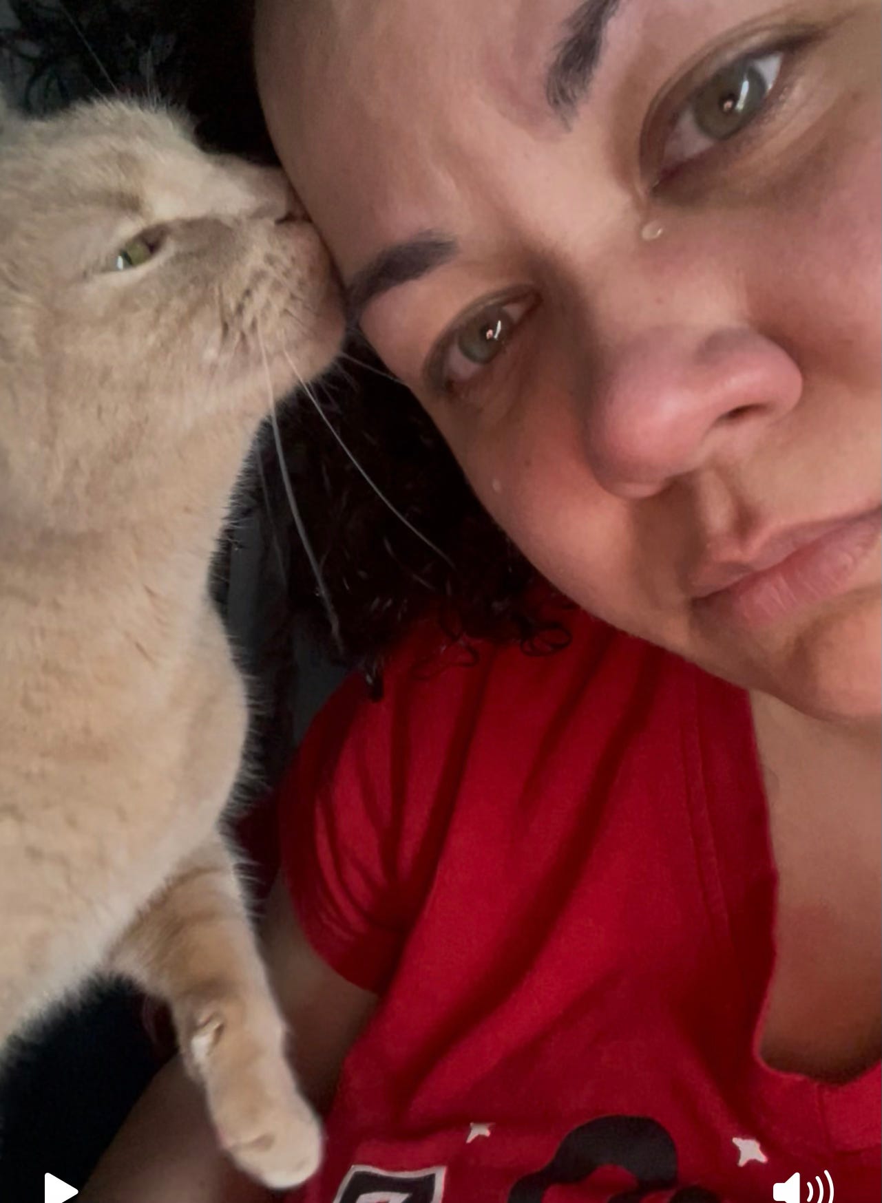 Screenshot of a video I took of Nala Beans consoling me with purr purrs and cunty love.